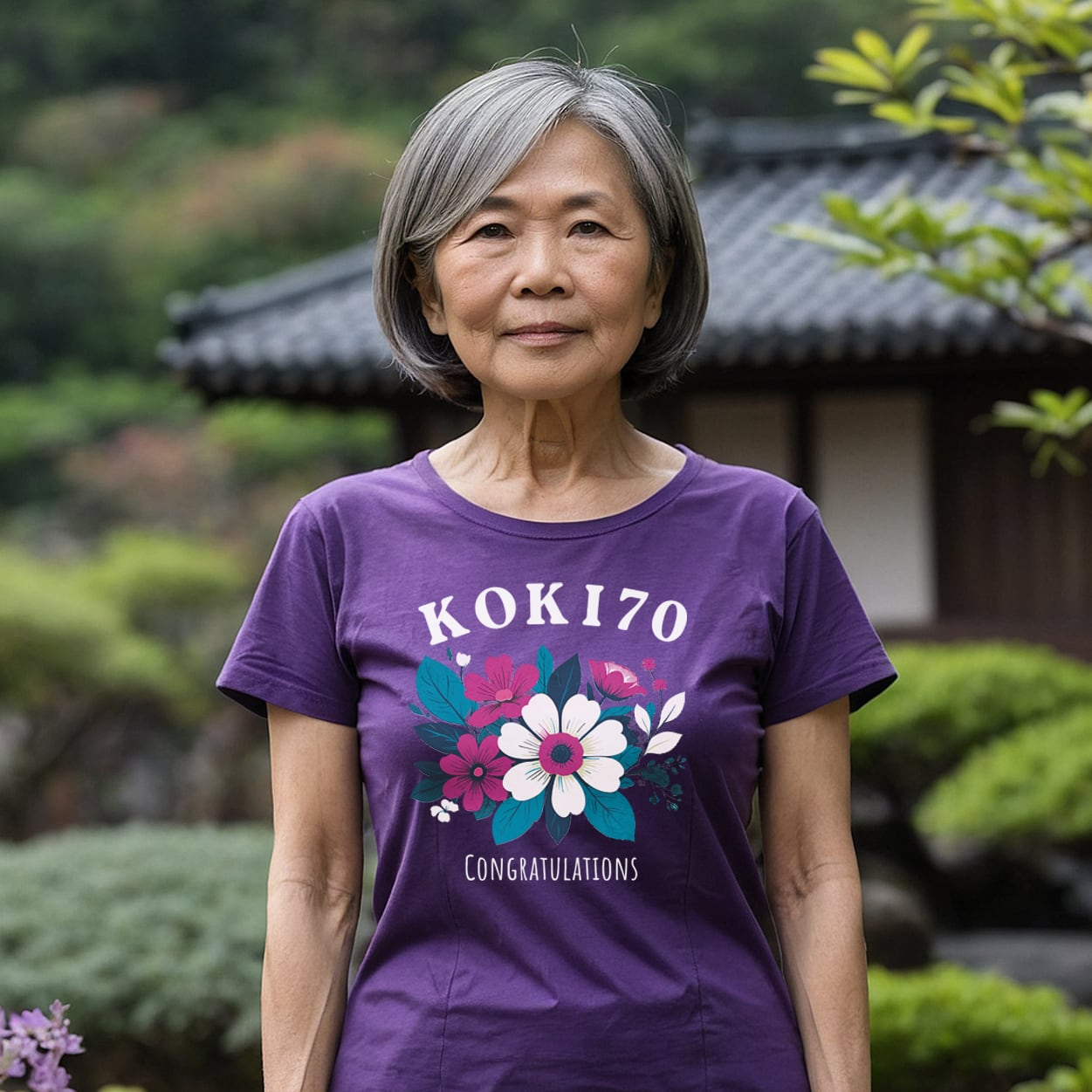 古希祝い 70歳 クラシックバイク 紫Tシャツ