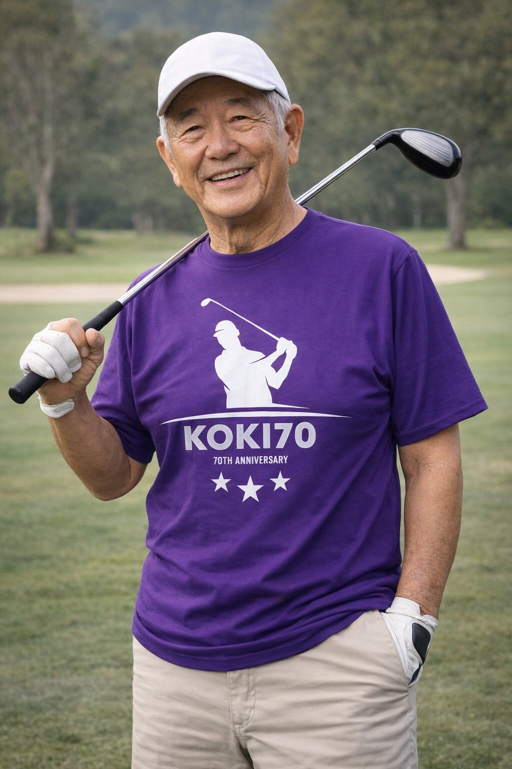 KOKI 70 70th Anniversary 70歳は、立ち止まる節目ではなく、 自分のペースで楽しみ続ける人生のステージ。 ゴルフスイングのシルエットと、落ち着きのあるパープルカラーを組み合わせたデザインは、 長年積み重ねてきた経験と、大人の余裕を表現しています。 派手すぎず、品よく存在感のある一枚。 記念日にはもちろん、日常のゴルフシーンや普段使いにも自然に馴染みます。 古希祝いの記念ギフトとして、 ゴルフ好きな方への70歳のお祝いにおすすめです。 1点ずつ丁寧に袋詰めしてお届けします ・簡易包装でのお届けとなります ・ギフト袋は付属しておりません(お客様ご自身でのラッピングをお願いします) この商品画像はオリジナルプリント.jpで生成したイメージです。 実物とは異なる場合がありますのでご注意ください。